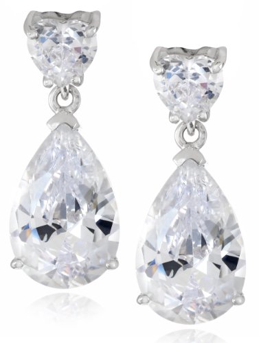 -. Title : Charles Winston, S Silver, Cubic Zirconia Heart & Pear Shape Drop Earrings, 5mm HS, 8x12mm PS, 7.00 ct. tw.