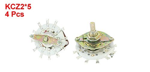 -. Feature : Product Name : Rotary Switch;Model : KCZ2*5 / Material : Metal,Plastic;Dimensions(knob not included) : 43x 45mm / 1.7'x 1.8'(Max.D*H) / Encaixe do furo de montagem Diâmetro: 10mm / 0,4 '; Diâmetro do eixo: 6mm / 0,24' / Pin Number : 12;Contact Type : 2 Pole 5Position / TotalWeight : 124g;Package Content : 4 x Rotary Switches