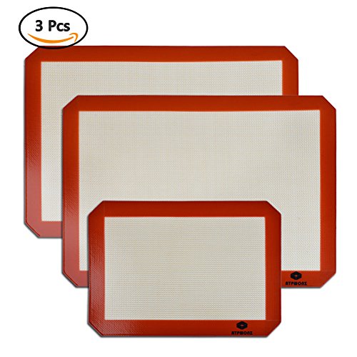 ATPWONZ Silicone Baking Mat Set of 3, Non-stick Cooking Mat (2 Half Sheets 11.6’’ x 16.5’’ and 1 Quarter Sheet 8.5’’ x 11.8’’ ) BPA Free FDA and LFGB Certified