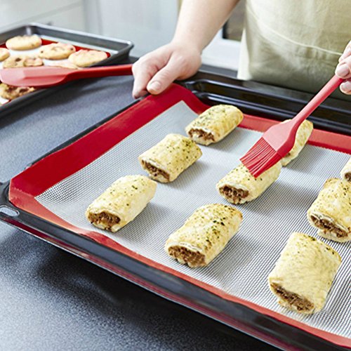 - 【Multipurpose】The Baking mat provides a uniform heat distribution during baking or cooking, baking temperatures between -40 ℉ and 482 ℉. You can also use it as a baking pan, pastry pad, rolling pad of dough for fudge cake, cake pastry board, place mat, heat-resistant gloves, etc