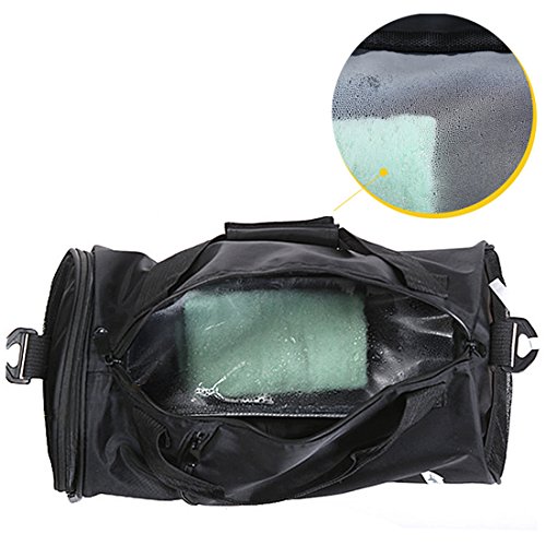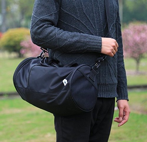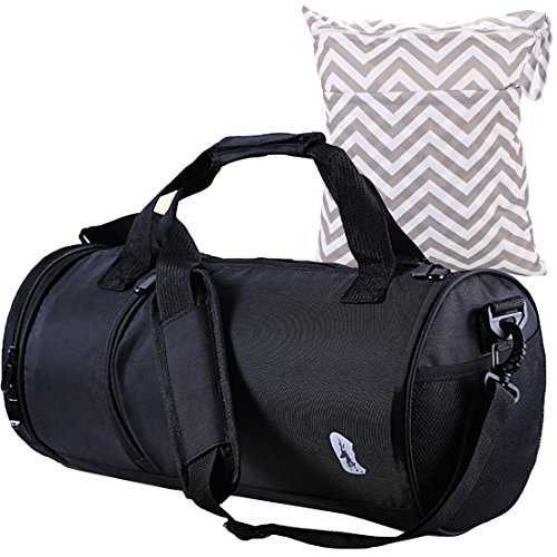-. Feature : Unisex water resistant stylish sports / swim duffel bag with a special convenient side pocket for shoes + waterproof zipper bag inside the bag to place dry and wet clothes separately. Extra spacious main compartment with front zipper pocket and two mesh compartment on the sides / Waterproof 2 in 1 wet bag features two zippered pockets to separate wet and dry items. Great for storing swimsuits, dirty/clean clothing and even cosmetic products / Environmentally friendly, eliminates the use of plastic bags for wet swimsuit or dirty items. Reusable, durable and lightweight. Hand or machine washable and hang dry / Perfect for swim, yoga, running, gym, hiking, camping, traveling and many more / Dual top carrying handles, detachable and adjustable shoulder strap included (can be easily turned into a messenger bag. Gym / Swim duffle bag dimension: 16.5"L x 9"D x 9"H