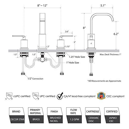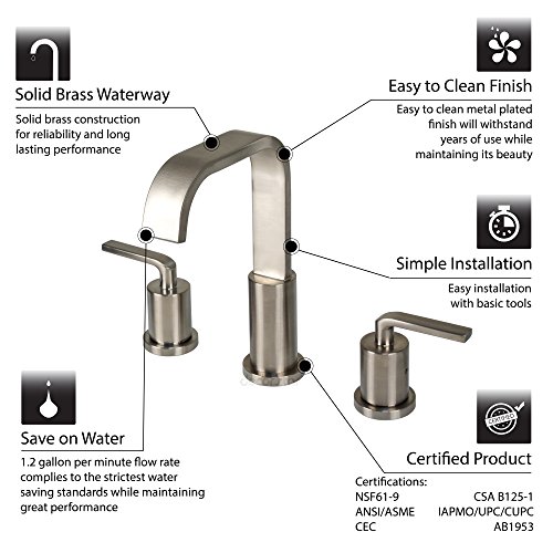 Decor Star WPC03-TB Contemporary Bathroom Vanity Sink Widespread Lavatory Faucet cUPC NSF AB 1953 Lead Free Brushed Nickel