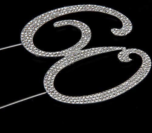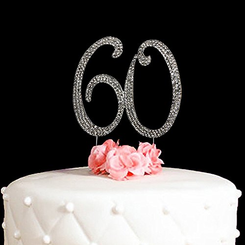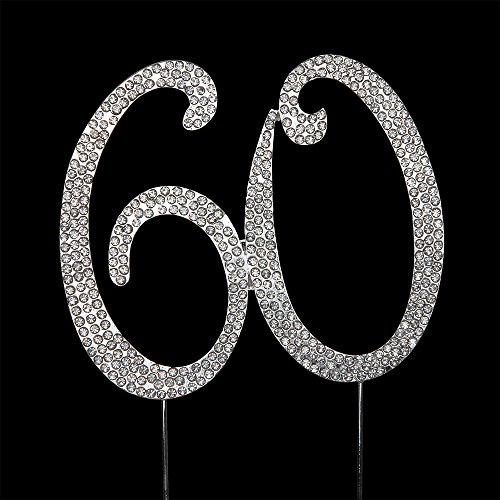 60 Cake Topper for 60 Years Birthday Or 60TH Wedding Anniversary Silver Crystal Rhinestone Party Decoration (Silver)