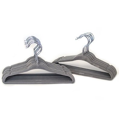 -. Binding : Kitchen -. Brand : Closet Complete -. Color : Grey -. EAN : 0687926114730 -. Feature : Keep your little one's closet neat and organized with Closet Complete's Grey Velvet Kids Hangers | Set of 25 / Sized just right for child-sized clothing | Velvety finish prevents clothing from slipping off the hanger / Slim design maximizes closet space | Plastic, nylon and metal / Measures 14" L x 8.7" H / Imported -. IsAutographed : 0 -. Model : N/A -. ProductGroup : Home -. ProductTypeName : HOME -. Title : Closet Complete Kids Velvet Hangers in Grey (Set of 25) l Sized for Child Clothing -. UPC : 687926114730