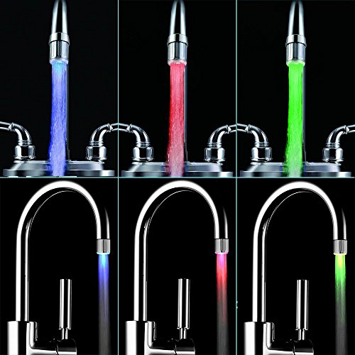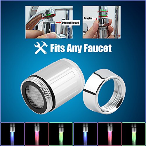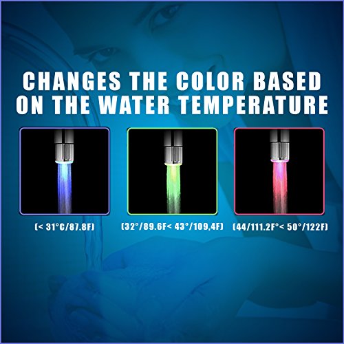 LED Water Faucet Changes Color Depending on the Water's Temperature. Blue for Cool, Green for Warm, Red for Hot. Fits Male & Female Thread Taps Perfect for Kitchens and Bathrooms by ToiLight
