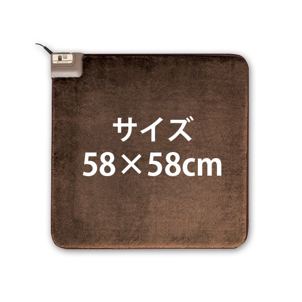 足元でも座面でも使える!●テクノヒート採用●強弱切り替え付き消費電力 72W/強 電気代 約1.1円/時 表面温度 52℃ 素材 ポリエステル100%吸湿発熱テクノヒート 商品サイズ 約 縦58×横58cm検索キーワード:暖房 家電 電気暖房 あったか チェアマット ホットカーペット 電気カーペット 電気マット ホットマット 小型 コンパクト イス 椅子 床 正方形 座布団 マット 強弱切替