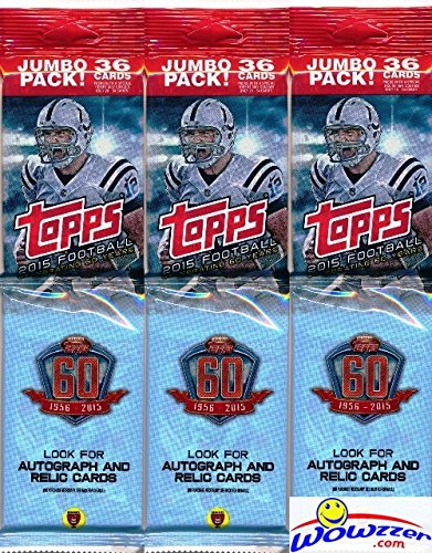 [Product Information]- Original EXCLUSIVE 2015 Topps NFL Football Lot of (3) Factory Sealed JUMBO FAT PACKS with 108 Cards!