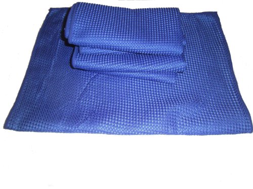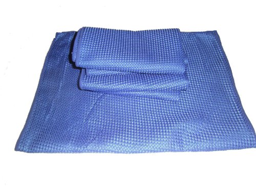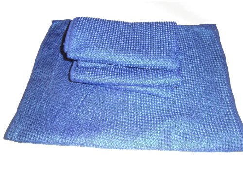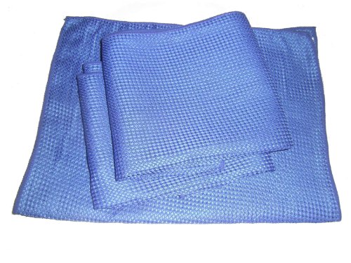 3 Pack of Blue 16" By 24" Waffle Weave Microfiber Towels_6 Square Feet of Professional Quality Towels Plus One Blue All Purpose Microfiber Towel.