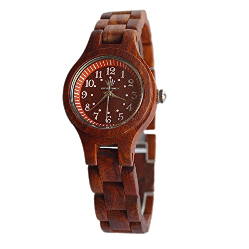 -. Title : Ideashop® Handmade Women's Lightweight Round Red Natural Sandalwood Wood Watches Pure Wood Watch Women's Style Delta Quartz Analogue Watch Digital watch Quartz Movement Gift Wmen's Watches