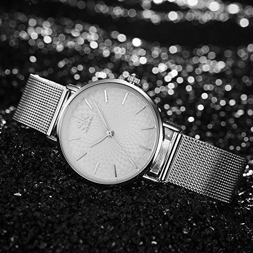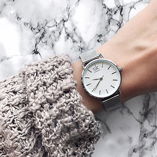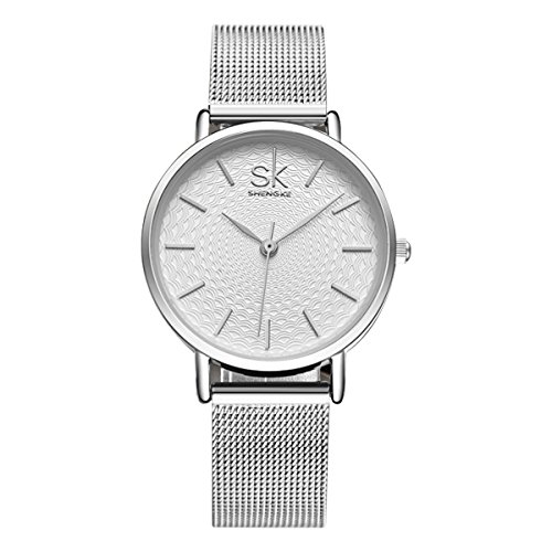 SHENGKE SK K0006 Luxury Silver Watches for Women Stainless Steel Wrist Watch for Ladies