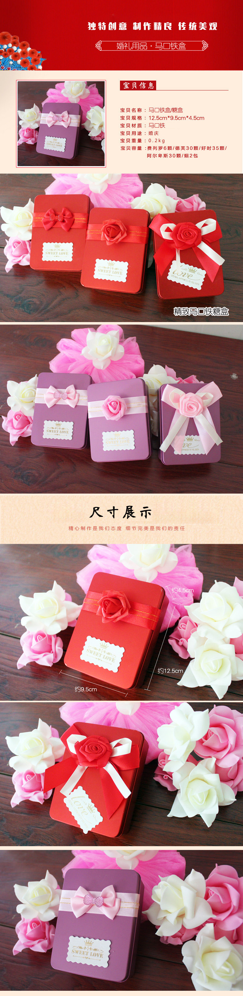 婚庆结婚创意定制喜糖盒子 马口长方形铁糖盒 可装烟 定做需3天