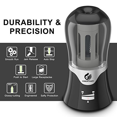 - ✔Strong,Robust Motor:AC powered motor which is more powerful than battery powered compared with the similar products. Its powerful electric motor will polish and sharpen your pencils in a short time which give you an amazing sharpening experience.