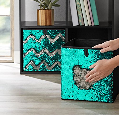 Mainstays Sequin Reversible Collapsible Fabric Storage Cube Bin, Set of 2 (Green/Silver)