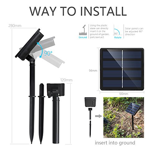 This solar string lights is a upgrade 8 modes outdoor string lights, the access points of this string lights is from the middle of the line to both sides instead of from one end to the other side, such it can be avoided in the end of the lighting beads away from the battery appears dim phenomenon. Specification: Light Color: Cool white