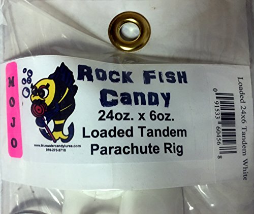 -. Binding : Misc. -. Brand : Blue Water Candy -. Color : White -. EAN : 0091533604568 -. Feature : Blue Water Candy - Rock Fish Candy 24 oz Cannonball & 6 oz Grinning Gus Mojo Lures Loaded with 9-Inch Swimbait Shad Bodies Tandem Parachute Rigged & Ready (White) / Beautifully painted head featuring large bubble eyes, tied with the finest nylon fibers available with soft mylar accents running through it. Hand tied in the USA. / Hand tied in the USA. -. IsAutographed : 0 -. IsMemorabilia : 0 -. Label : Blue Water Candy -. Manufacturer : Blue Water Candy -. MPN : 60456-8 -. PartNumber : 60456-8 -. ProductGroup : Sports -. ProductTypeName : SPORTING_GOODS -. Publisher : Blue Water Candy -. Size : 24 oz & 6 oz -. Studio : Blue Water Candy -. Title : Blue Water Candy - Rock Fish Candy 24 oz & 6 oz Mojo Lures Loaded with 9-Inch Swimbait Shad Bodies Tandem Parachute Rigged & Ready (White) -. UPC : 091533604568