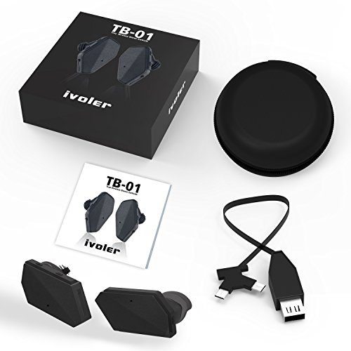 iVoler TB-01 Bluetooth Earbuds V4.1 True Wireless Earphones Headset in-Ear with Microphone Hands-Free Noise Cancelling Twins Stereo Sport Headphones for iPhone 7 Apple iPad Samsung Android And More