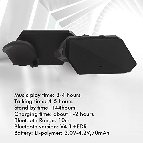Long Battery Life: Extra Long Battery Life allows up to 5 hours talking time, 3 hours music time, 6 days standby time. Built in 70 mAh Lithium Polymer battery, Make you enjoy music or watching TV&films for a longer time, specially designed a dual micro head cable and Mini Portable Bag Make sure more convenient to carry&charging when you mountaineering, hiking, biking or other outdoor sports.
