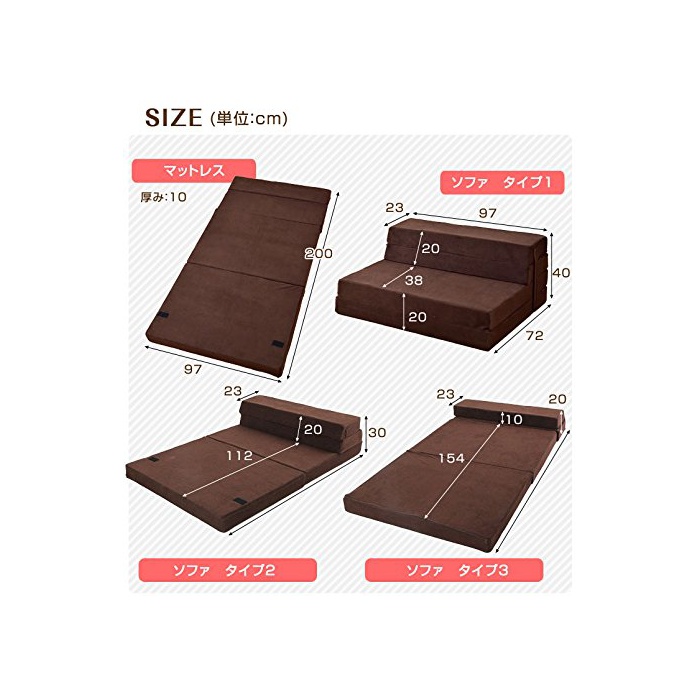 원본상품명: タンスのゲン 高反? ソファ?マットレス シングル 幅97cm 厚み10cm 4WAY マットレス ソファ?ベッド 【パイル】ブラウン AM 000070 00