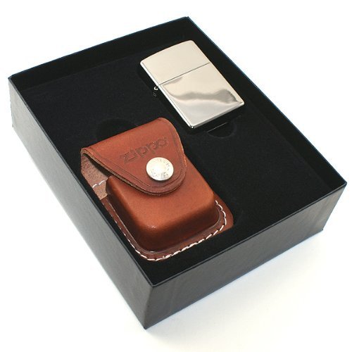 Studio : Zippo Publisher : Zippo Binding : Kitchen Product Description The perfect match! Our most popular Zippo teamed up with a brown leather Zippo pouch in an elegant felt lined gift box. A unique glossy finish that resembles the color of black ice. An exceptional personalized groomsmen gift or for that special someone you want to leave with an impression to last a lifetime!Lighter is permanently marked in black for elegant contrast. 0
