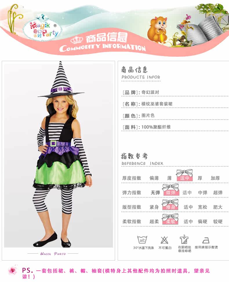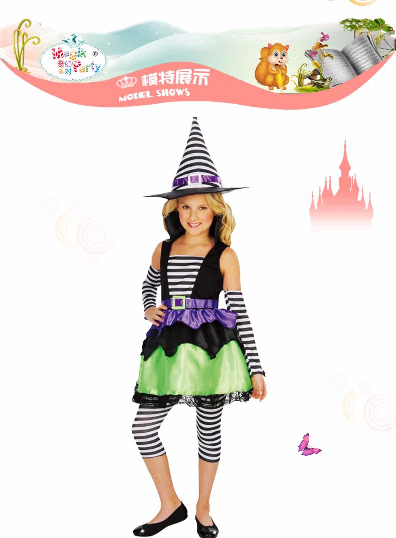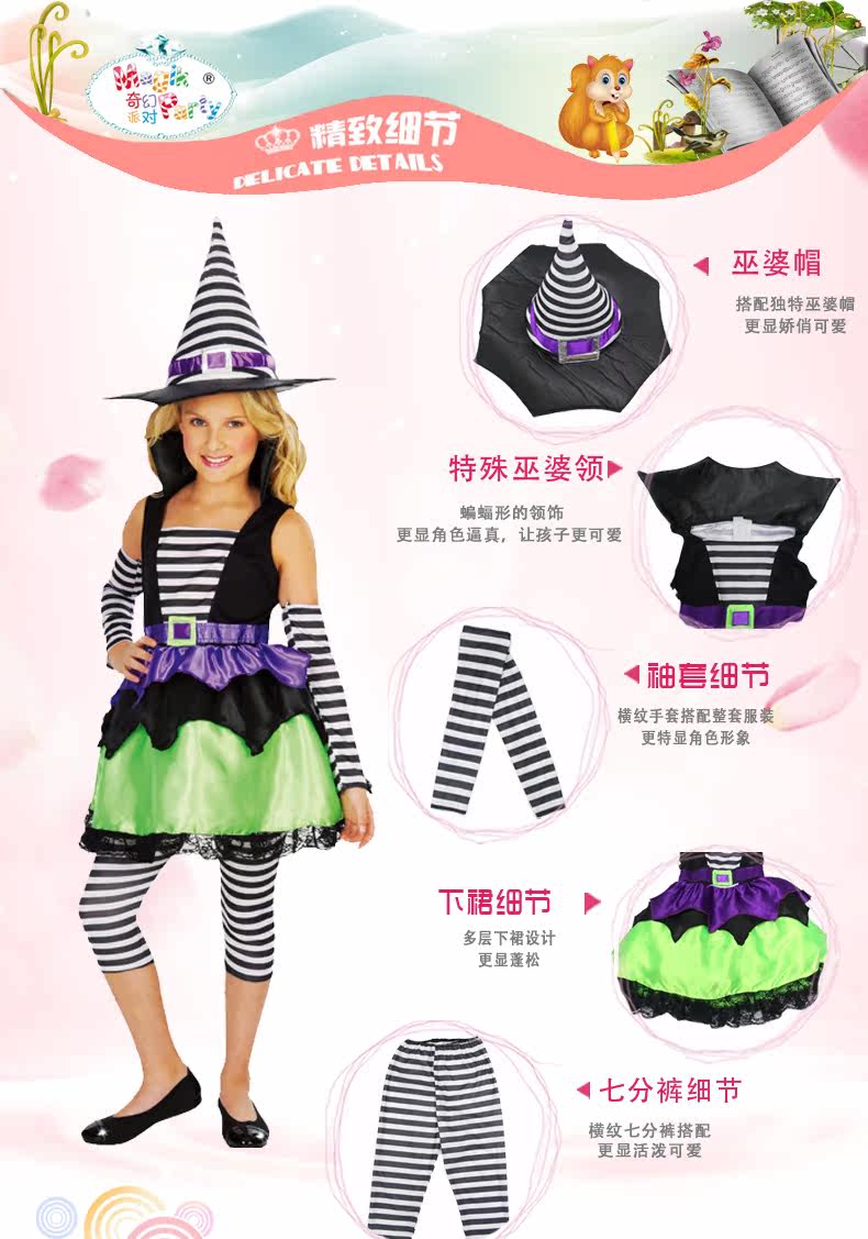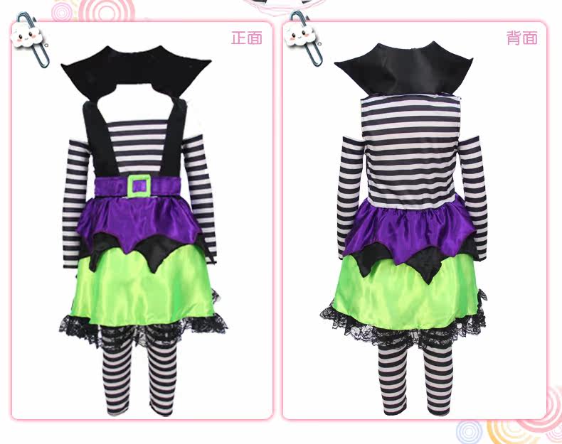 万圣节cosplay演出服装化妆舞会恐怖儿童女巫女巫师表演服女巫婆