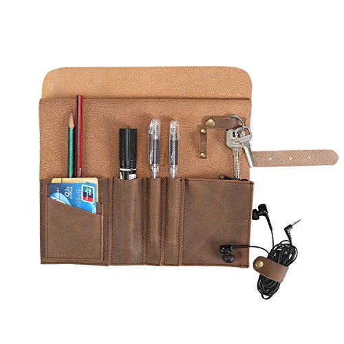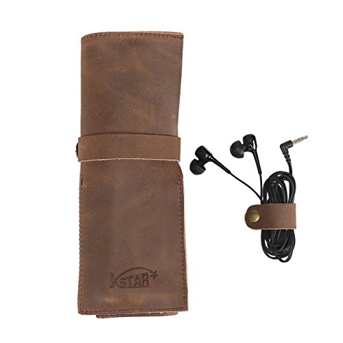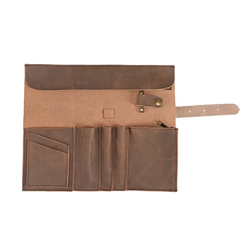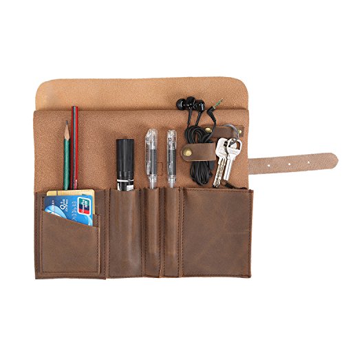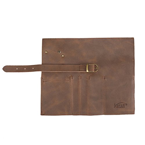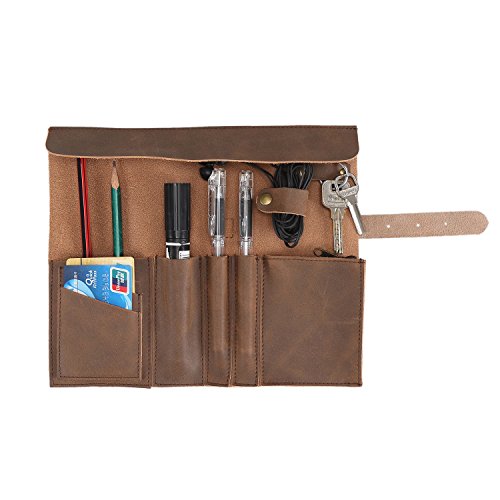 Genuine Crazy Horse Leather Pencil Roll Up Art Accessories Carrier Case with Zipper Pouch Pocket