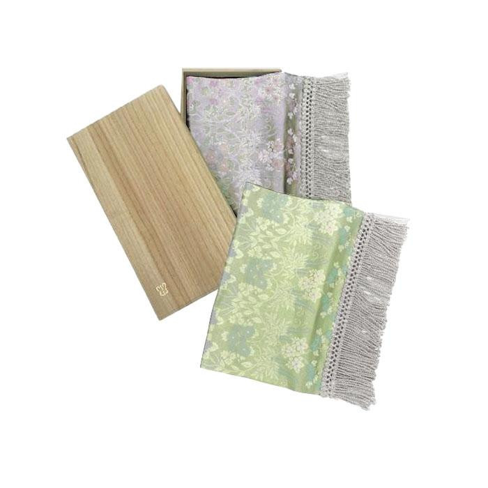 美しく繊細な柄と、絹のつややかな光沢で高級感のあるテーブルセンターです。テーブルを華やかに彩ります。桐箱入りなので、贈り物にも最適です。 |