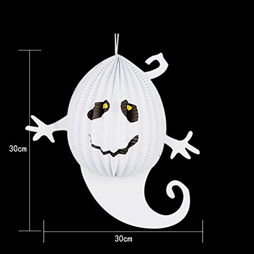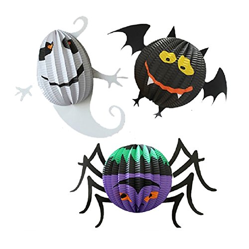 Feature : Material:Paper / Dimension:Ghost:height:30cm(11.8in),diameter:30cm(11.8in);Bat: height:26cm(10.2in),diameter:40cm(15.7in);Spider: height:30cm(11.8in),diameter:40cm(15.7in). / Can be used indoor or outdoor. / Folding: easy installation - Remove and Reuse. / Suitable for Halloween, cosplay ,Bar,Ktv,club dancing parties and Birthday party etc.