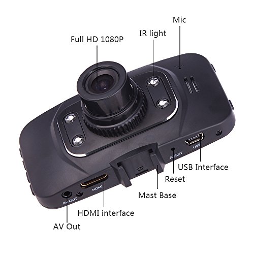 -. Feature : Brand new and high quality Lens: 120 degree lens 1920x1080 full HD resolution / Support HDMI, AV-output, USB interface for video transmission to computer or high-definition television. (USB port also for charging.) / G-sensor function. IR night vision, with 4 LEDs. 4X digital zoom. Can automatically turn on and record when the car starts. / 30/60 frames per second smooth video With 3M adhesive and suction cup bracket, convenient installation / 2.7 inch LCD screen, watching while shooting. Memory card : Supporting TF Card up to 32GB (not included)