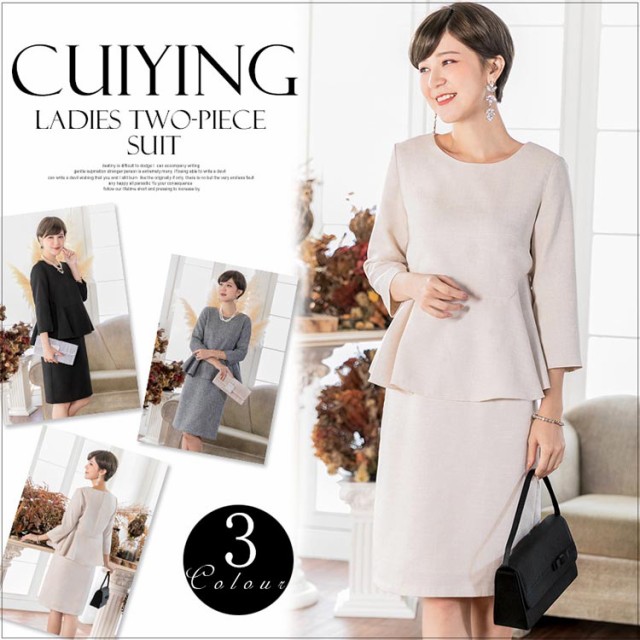 フォーマルなきちんと感とフェミニンさを兼ね備えたぺプラムセットアップスーツ。