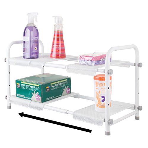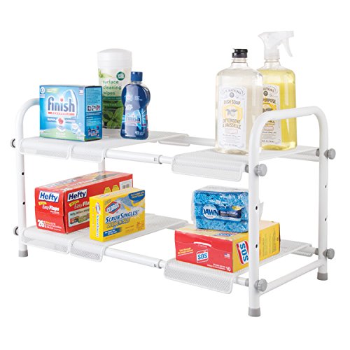 mDesign 2-Tier Under Kitchen Sink Organizer with Expandable Shelf - White