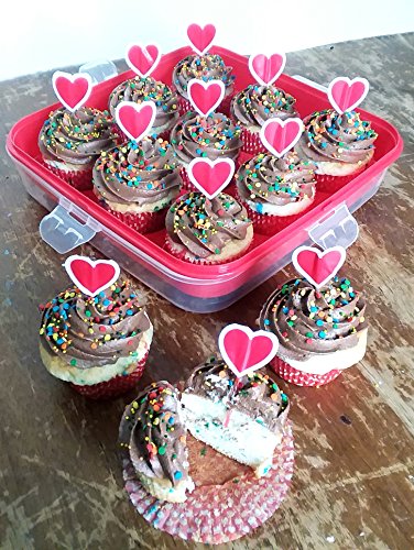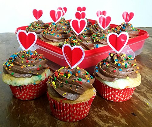 Unique cupcake kit includes 24 - 2 inch red liners with white hearts and 24 - 2.5 inch red heart picks