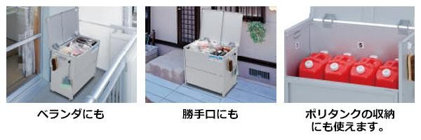 | 素材・材質 | 本体:アルミ亜鉛合金メッキ鋼板(ガルバリウム鋼板) フタ取っ手・コーナーガード・本体取っ手:ABS樹脂 アジャスター・フック:ポリプロピレン 通気カバー:ポリスチレン |
