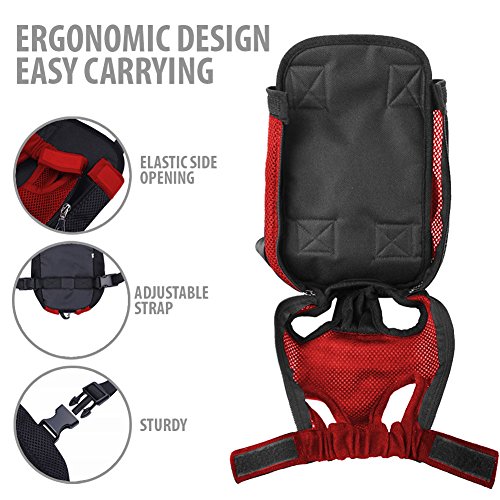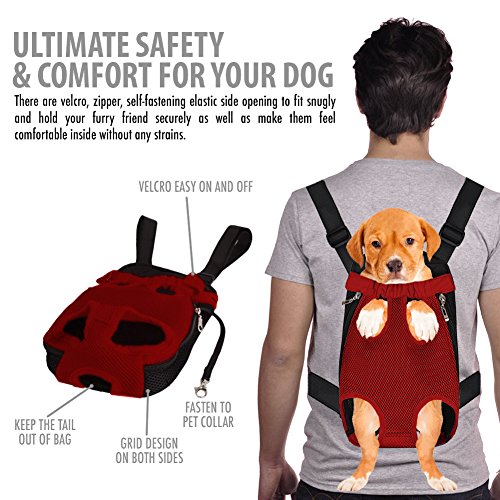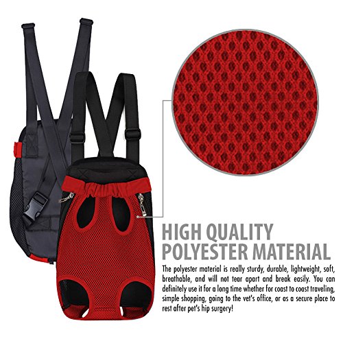 -. Feature : CONVENIENT HANDS-FREE PET CARRIER - Feel more leisure with the brilliant design of Dog Carrier (TM). You can carry your dog or cat just like an infant on your back or front & they will look super cute in it. In case you're planning a trip abroad, it also meets airline standards! / HIGH QUALITY POLYESTER MATERIAL - The polyester material is really sturdy, durable, lightweight, soft, breathable, and will not tear apart and break easily. You can definitely use it for a long time whether for coast to coast traveling, simple shopping, going to the vet's office, or as a secure place to rest after pet's hip surgery! / ERGONOMIC DESIGN FOR EASY CARRYING - Dog Carrier (TM) has adjustable shoulder strap, with buckle to fasten around your waist, so you'll feel comfortable & won't get any strain on your shoulder or waist. It's also easy to clean & store! / ULTIMATE SAFETY FOR YOUR DOG - There are velcro, zipper, self-fastening elastic side opening to fit snugly and hold your furry friend securely as well as make them feel comfortable inside without any strains. Plus, it also has a tail hole so dogs can freely wiggle their cute tail! / ULTIMATE SAFETY FOR YOUR DOG - There are velcro, zipper, self-fastening elastic side opening to fit snugly and hold your furry friend securely as well as make them feel comfortable inside without any strains. Plus, it also has a tail hole so dogs can freely wiggle their cute tail!