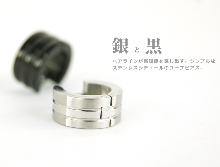 ステンレス製のフープピアス。 ステンレスだから金属アレルギーの心配もいらず、酸化もしにくいのが特長です。