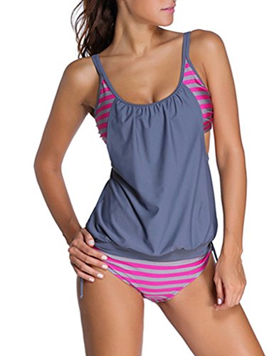 EVALESS Womens Shoulder Straps Tankini Top with Built In Sports Bra Swimwear X-Small Size Rosy