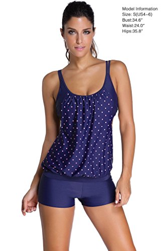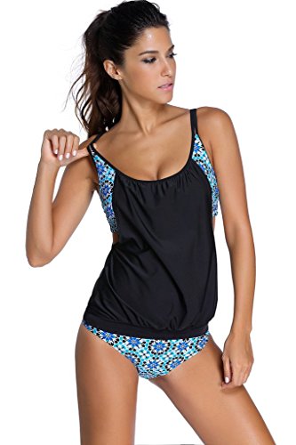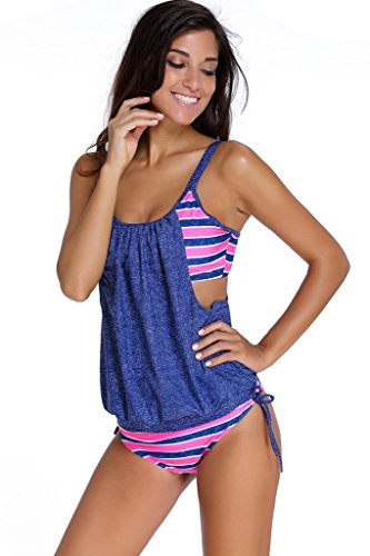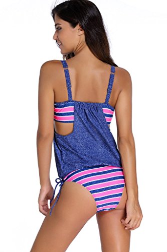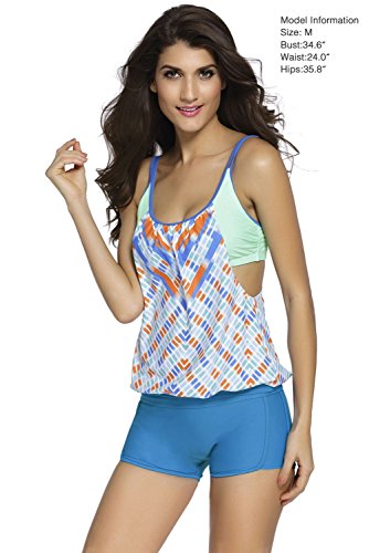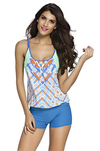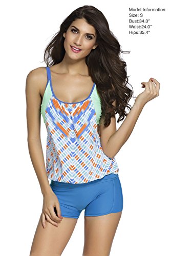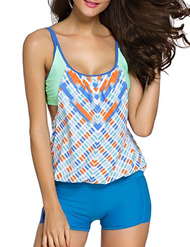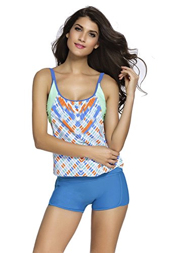 EVALESS Womens Lined Up Tankini Top and Bikini Bottom Swimsuit Set X-Large Size Blue