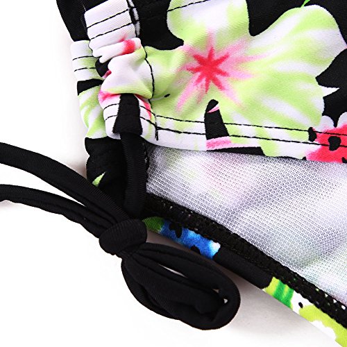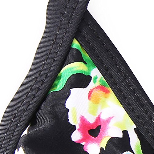 EVALESS Women Shoulder Straps Outfit Boyleg Sports Tankini Sets Two Piece Swimsuit Medium Size Black&Flower