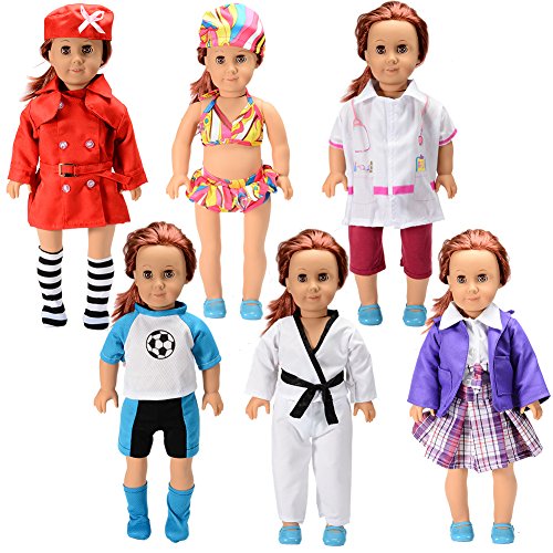 -. Title : Sakiyr American Girl Doll Clothes Accessories Set - 6 PACK Complete Outfits Include Stewardess, Doctor, Soccer, Taekwondo, Bikini, School Uniforms for 18" American Girl Doll (Dolls Not Included)