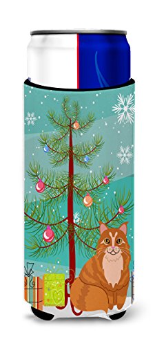 Caroline's Treasures Maine Coon Cat Merry Christmas Tree Michelob Ultra Hugger For Slim Cans, Slim Can, Multicolor