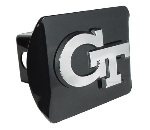 Georgia Tech Yellow Jackets Black Metal Trailer Hitch Cover Chrome Metal with NCAA Logo Fits 2" Receivers