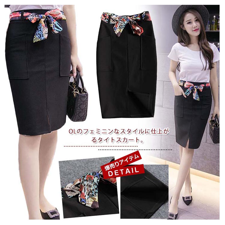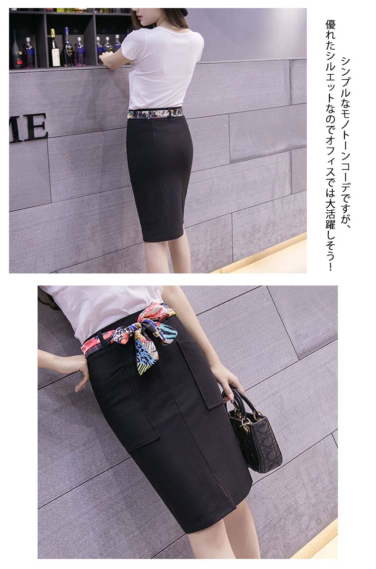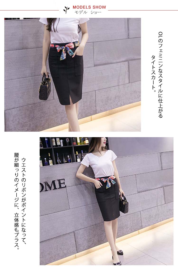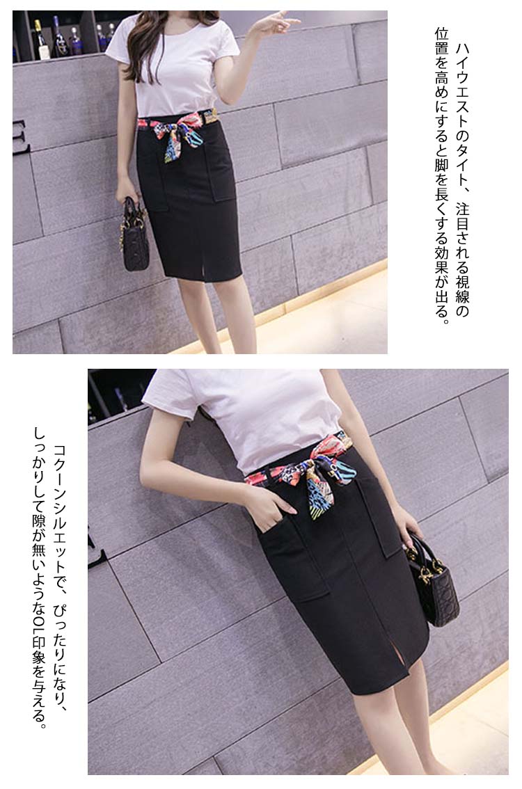 | OLのフェミニンなスタイルに仕上がるタイトスカート。ウエストのリボンがポイントになって、腰が細っりのイメージに、立体感もプラス。ハイウエストのタイト、注目される視線の位置を高めにすると脚を長くする効果が出る。コクーンシルエットで、ぴったりになり、しっかりして隙が無いようなOL印象を与える。シンプルなモノトーンコーデですが、優れたシルエットなのでオフィスでは大活躍しそう! | |