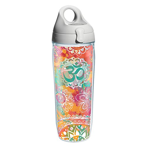 Tervis 1204543 Yoga Om Pattern Wrap Water Bottle with Grey Water Bath Lid, 24 oz, Clear
