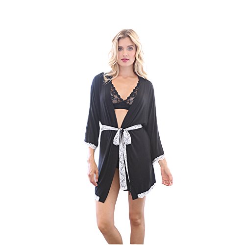 Honeydew Women's All American Rayon & Lace Robe(Black,M)