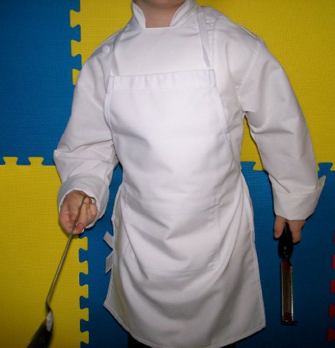 CHEFSKIN WHITE APRON KIDS CHILDREN FITS 2-7 YR OLDS 15x21 INCHES REAL FABRIC 100% POLY GIFT PARTY FAVOR
