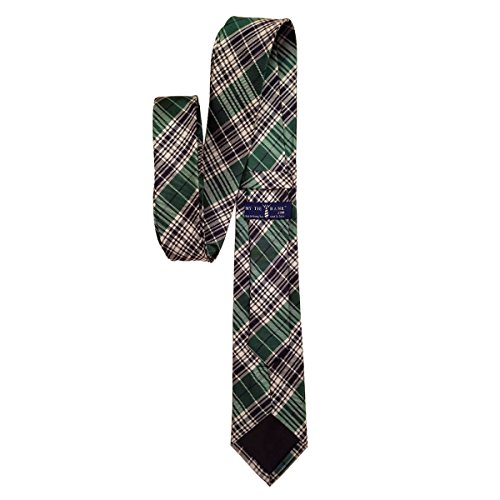 (My Tie Bank)/Accessories/Ties/DIRECT FROM USA/Wells Black Green Plaid Check 100% Silk 2.5 Inch Skinny Tie