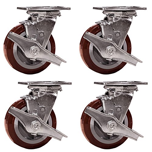 Service Caster SCC-30CS520-PPUR-TLB-4 Heavy Duty Swivel Casters with Brakes, Non-marking Polyurethane Wheel, 5" Size (Pack of 4)