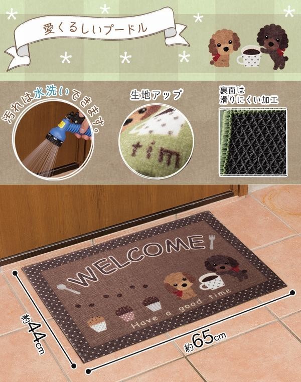 | 落ち着いた色合いと可愛らしいデザインの屋外用玄関マット♪汚れたら水洗いでき、裏面には滑りにくい加工を施しているので横ズレしにくいです。 |