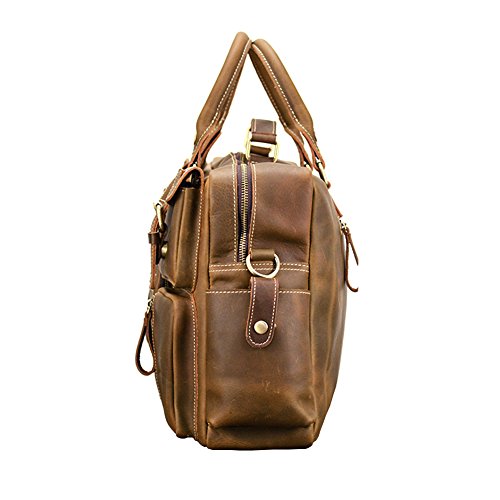 Product Description LANWIN Leather Briefcase Messenger Bag: Vintage Design, Multiple Uses! A successful man usually needs a nice business bag which can be used in office, meeting, business travelling or daily life, this is just the one! Vintage Crazy Horse leather and special twin buckle decoration freshen up this LANWIN leather satchel handbag. Designed with top handles and adjustable shoulder strap, you could use it as a handbag, shoulder bag or cross-body bag. If you're looking for a combination of retro and modern styles in a durable leather briefcase, just click "ADD TO CART" now! Basic Informations: Item weight: 3.lb Dimensions(L*W*H): 16.5" *5.9" *11" Remarks: 1. There may be a bit smell when you get this bag, since it's new unused. You could open the package and put it in a ventilate place for a few hours, then the smell will fade away. 2. Because each piece is individually crafted, the color may vary slightly. 3. Pls confirm the size according to our description instead of the photos. 4. The distinguishing feature of Crazy-horse leather is that there are some disordered scratches on the surface. So it can present the style of retro and wildness .When you scrape it widely, the trace will be appeared. If the trace is not obvious, you can wipe it gently, then the trace will be less.