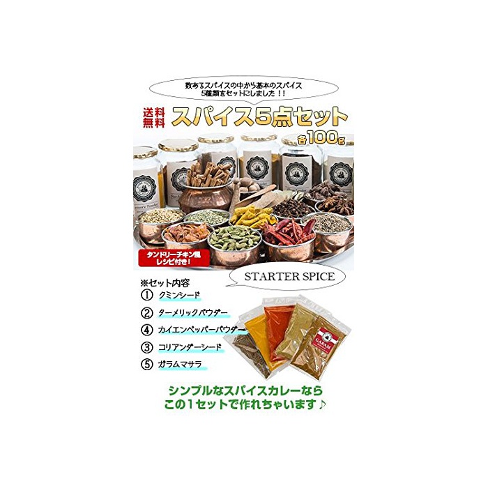 원본상품명: 神?スパイス スパイス 5点セット【100g各1袋】 コリアンダ?パウダ? ガラムマサラ タ?メリックパウダ? クミンシ?ド カイエンペッパ? スタ?タ? スパイスセット 業務用