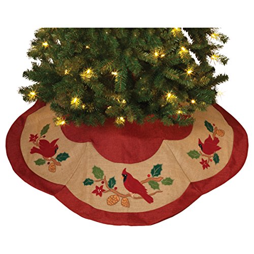 Gerson 48"d Poly-linen & Burlap Tree Skirt, Applique & Embroidery, Scallop Shape